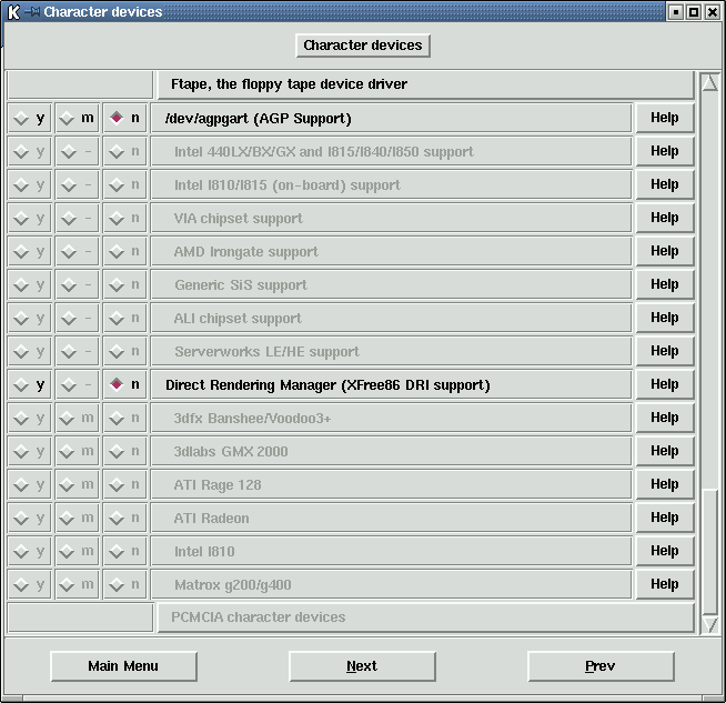 | Figure 1: | The graphical interface for defining your Linux kernel after the command 'make xconfig'. |